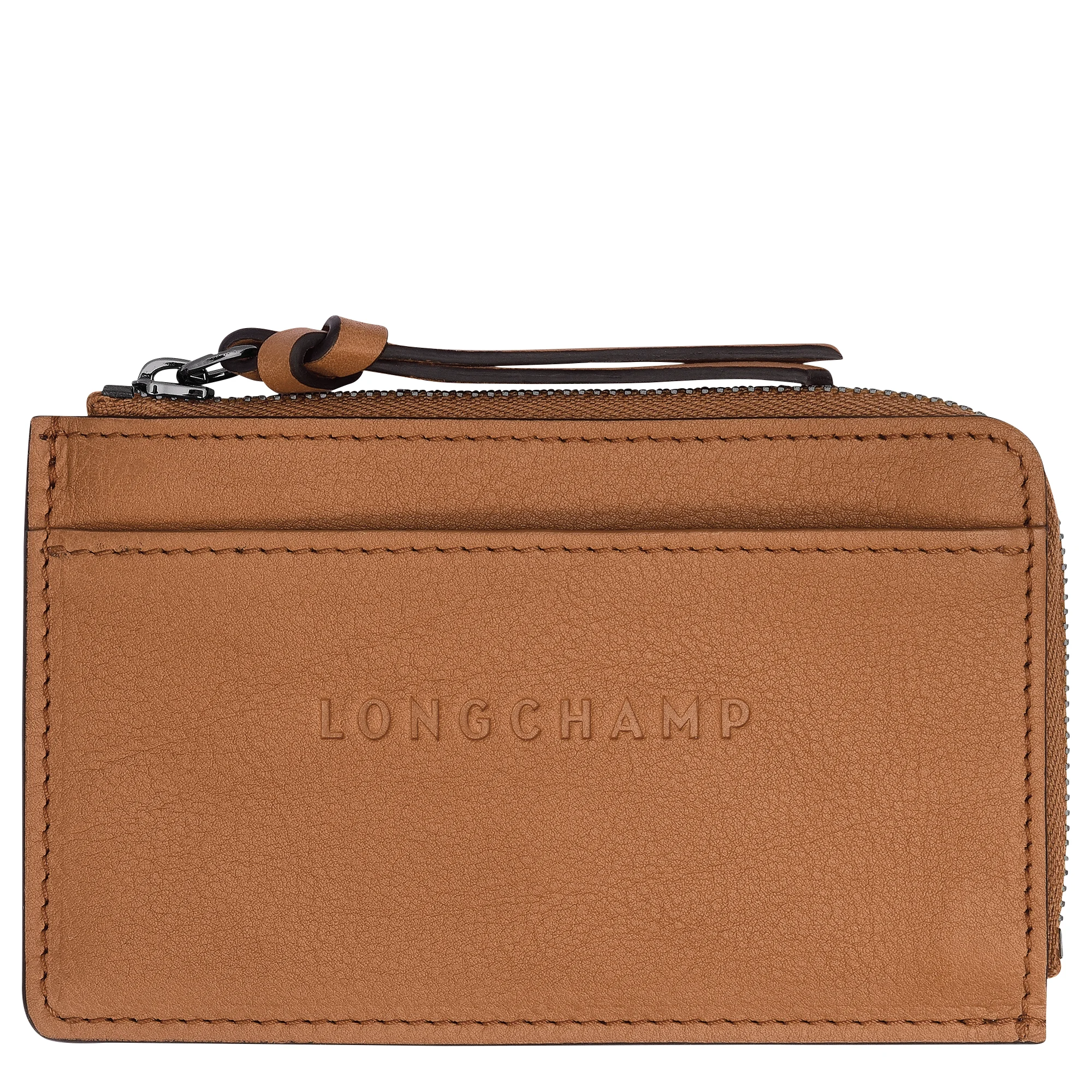 Product Details Reference : 30034HCV016 Dimensions : 5.1 in (L) x 3.1 in (H) Material : Calfskin Leather Metallic Hardware : Dark silver color Trimming : Cowhide leather Lining : Polyamide and recycled polyester - Longchamp horse Jacquard Exterior details Flat pocket : 1 interior details Credit card space : 4 Coin slot : YES