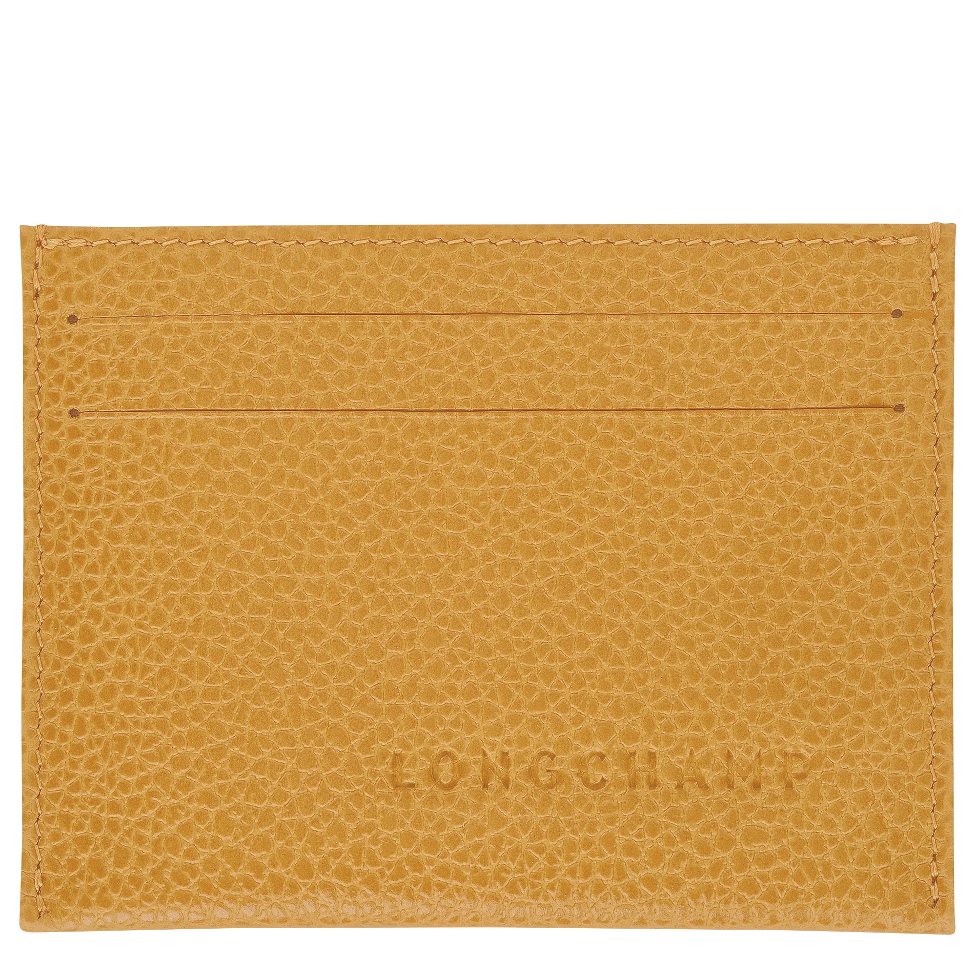 Product Details Reference : L3218021894 Dimensions : 3.9 in (L) x 3 in (H) Material : Cowhide leather Metallic Hardware : Very pale gold color Lining : Recycled polyester - Jacquard Longchamp ribbons interior details Credit card space : 4