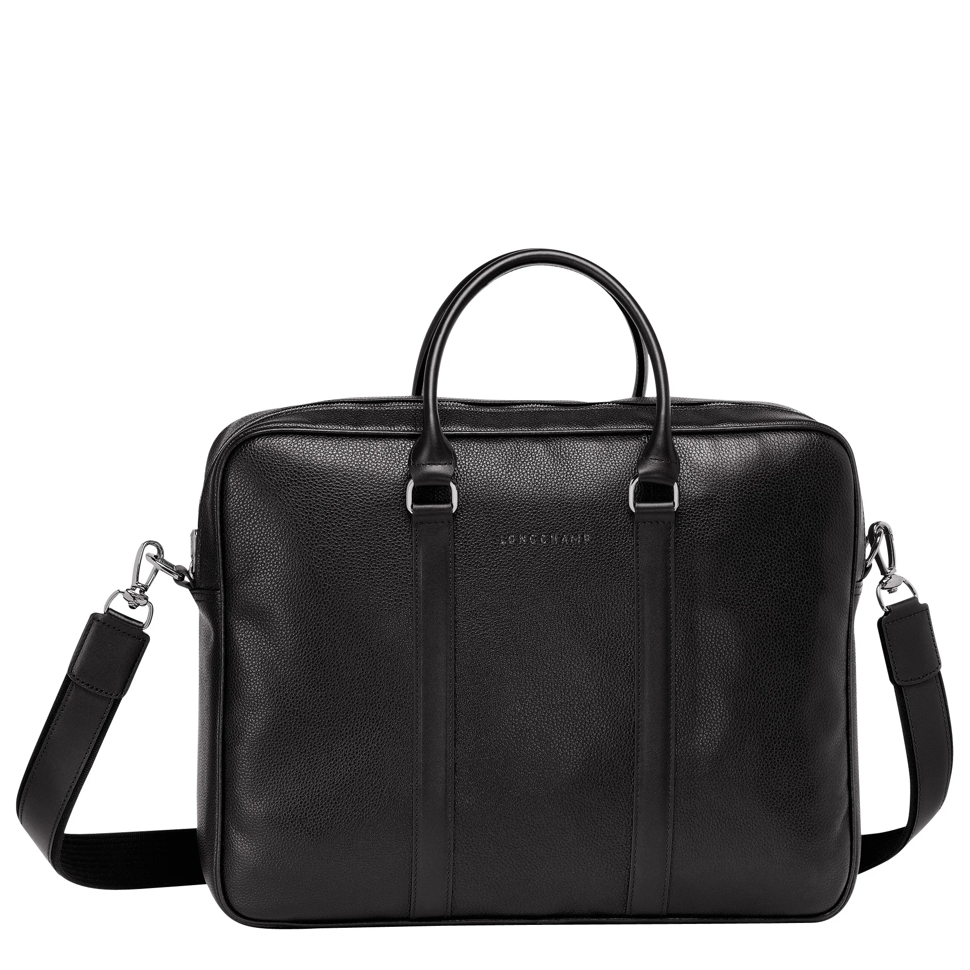 Product Details interior details Computer space : YES Reference : L2123021047 Dimensions : 15.7 in (L - measured at the base of the bag) x 12.2 in (H) x 3.5 in (W) Material : Cowhide leather Metallic Hardware : Silver color Lining : Textile Weight : 1,257 g Closing : Zipped The leathers of Longchamp bags may have subtle variations. These reflect the vivid nature of the leathers used in our workshops and reveal the authenticity of their appearance as well as their exceptional quality. Exterior details Strap Height : 41 cm / 16.1 in Zipped pocket : 1 Strap : Removable interior details Computer space : YES Digital tablet space : YES Zipped pocket : 1 Flat pocket : 1 Phone pocket : 1 Pen pocket : 1