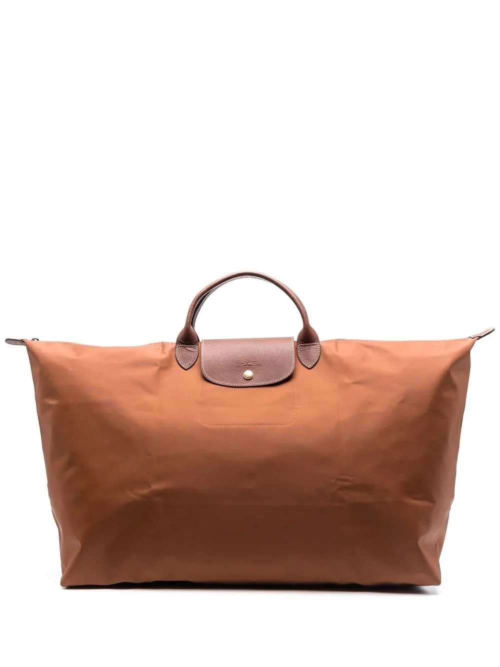 XL Le Pilage travel bag cognac brown leather embossed logo to the front two rounded top handles top zip fastening foldover top with press-stud fastening main compartment packable design Imported Composition Outer: Polyamide 100% SIZE & FIT Model measurements Height 6 ft 1 in(1.85 m) Bust/Chest 38.58 in(98 cm) Hips 37 in(94 cm) Waist 30.31 in(77 cm)