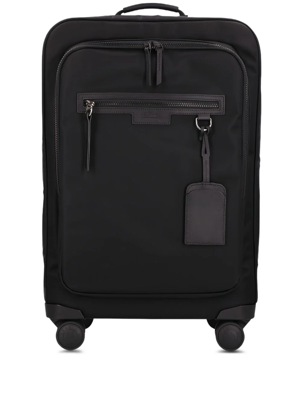 leather-trimmed wheeled trolley Highlights - Black - Leather trim - Top handle - Zip fastening - Luggage tag - Four wheels Imported Composition Outer: Leather 100%, Fabric 100%