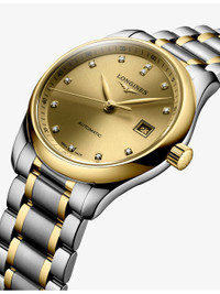 PRODUCT DETAILS - Longines 18ct Yellow-Gold, 0.034ct Diamond And Stainless-Steel Automatic Watch - Case material: 100% stainless steel, 100% 18ct yellow gold - Strap material: 100% stainless steel, 100% 18ct yellow gold - Crown: 100% stainless steel - Bezel: 100% 18ct yellow gold - Style Number: L2.257.5.37.7 - Movement type: automatic - Fastening: triple safety folding clasp and push-piece opening mechanism - Dial: gilt set with 12 Top Wesselton VS-SI 0.034ct diamonds - Index: diamond indexes - Hands: gilt hands - Glass: scratch-resistant sapphire crystal - Stones: 12 diamonds - Calibre: L592 - Carat weight: 0.034ct - Case thickness: 9.00 mm - Case diameter: 29.00 mm - Technical details: date window - Water resistance: Water-resistant to 3 bar (30 m) - Made in: Switzerland - Warranty: 5 years - Returns: Warranty card and diamond certificate to be included with return. Ref: R04525246