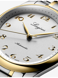 PRODUCT DETAILS - Longines18ct yellow-gold and stainless-steel automatic watch - Case material: 100% stainless steel, 100% 18ct yellow gold - Strap material: 100% stainless steel, 100% 18ct yellow gold - Crown: 100% 18ct yellow gold - Bezel: 100% 18ct yellow gold - Style Number: L2.628.4.77.6 - Movement type: automatic - Fastening: triple safety folding clasp and push-piece opening mechanism - Dial: silver - Index: engraved Arabic numerals - Hands: gilt hands - Glass: scratch-resistant sapphire crystal, with several layers of anti-reflective coating on both sides - Calibre: L888 - Case thickness: 9.35 mm - Case diameter: 40.00 mm - Water resistance: water-resistant to 3 bar (30 m) - Made in: Switzerland - Warranty: 5 years Ref: R04472687