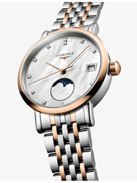 PRODUCT DETAILS - Longines 18ct rose-gold, stainless-steel and 0.040ct diamond quartz watch - Case material: 100% stainless steel; 100% 18ct rose gold - Strap material: 100% stainless steel; 100% 18ct rose gold - Crown material: 100% 18ct rose gold - Style Number: L4.330.5.87.7 - Movement type: quartz - Fastening: triple safety folding clasp and push-piece opening mechanism - Dial: round, white mother-of-pearl - Hands: Pink hands - Index: diamond indexes - Glass: scratch-resistant sapphire crystal, with several layers of anti-reflective coating on both sides - Calibre: L296 - Date window: yes - Technical details: date and moon phase - Stones: 12 Wesselton VS-SI diamonds - Carat weight: 0.040ct total - Case thickness: 8.50mm - Case diameter: 30.00mm - Water resistance: 3 bar / 3 atm / 30m / 100ft - Made in Switzerland - Warranty: 2 years, warranty card and diamond certificate to be included with return. Ref: R04473150