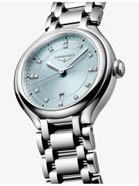 PRODUCT DETAILS - Longines stainless-steel and 0.057ct diamond quartz watch - Case material: 100% stainless steel - Strap material: 100% stainless steel - Crown: 100% stainless steel - Bezel: 100% stainless steel - Style Number: L8.142.4.97.6 - Movement type: quartz - Fastening: with triple safety folding clasp and push-piece opening mechanism - Dial: mint blue - Index: diamond indexes - Hands: silvered polished hands - Glass: scratch-resistant sapphire crystal, with several layers of anti-reflective coating on both sides - Calibre: L257 - Case thickness: 8.30mm - Case diameter: 30mm - Stones: 15 Top Wesselton VS-SI diamonds, totalling 0.057ct - Water resistance: water-resistant to 3 bar - Made in: Switzerland - Care: please refer to the brand's instructions - Warranty: 2 years - Returns: warranty card and diamond certificate Ref: R04584661