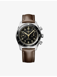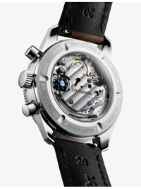 PRODUCT DETAILS - Longines Stainless Steel Manual Watch - 100% stainless steel - Style number: L3.721.4.53.2 - Chronograph flyback, mechanical movement with manual winding beating at 28'800 vibrations per hour, with a power reserve of approximately 68 hours. - Bi-directional rotating bezel, water-resistant to 10 bar, scratch-resistant sapphire crystal, with several layers of anti-reflective coating on both sides. - Black matt dial, swiss super-luminova®. - Leather strap bracelet, with double security folding clasp with micro adjustment system. - Applied Arabic numerals - Case diameter: 39.5mm - Wipe with a clean, dry cloth - Water resistance: 10 bar / 10 atm / 100m / 330ft - Two-year manufacturer's warranty Ref: R04551850