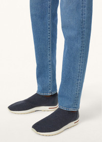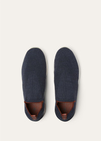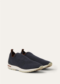 Sneaker crafted from knitted Wish® wool, finished with tonal calfskin trim. Ultra-light and supremely comfortable, perfect with casual looks for leisure time and relaxing. Product details Wish® is an exceptionally fine wool from selected Merino sheep bred in Australia and New ZealandBagged construction: the upper is stitched to the midsole and then fitted to the last. Further stages and checks follow before the sole is attached No laces Ribbed trim with kummel-coloured stripeKummel-coloured loop on heel with the Loro Piana logoKummel-coloured nappa calfskin footbed for enhanced comfortUltra-light white rubber sole with inserts and tread in kummel-coloured rubber, with a repeat pattern of the Loro Piana initials for a non-slip finishComposition: 100% virgin wool Trim: 100% calfskin Made in Italy Product code: FAI4815