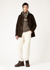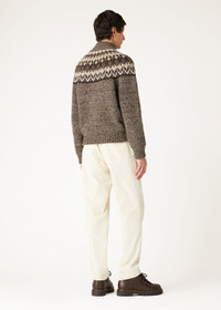 As the fire crackles and snow gently falls outside, the classic motif of the Alpe Pile half-neck sweater conjures up a touch of mountain magic for your leisure time. This cashmere piece offers a tapestry of comfort, with a jacquard motif on the top that flows seamlessly into a dense single jersey body. The multiple layers of cashmere coarse hair, reinforced with silk, create a fabric that is both substantial and silky to the touch. Product details Contrast leather zip pull Ribbed high neck Ribbed cuffs and hem Composition: 96% Cashmere, 4% Silk Model wears an IT L Model measures: height 6′ 2″/ 189cm, bust 34.3″/ 87cm, waist 28.0″/ 71cm, hips 34.6″/ 88cm. Product code: FAO6308