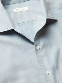 Loro Piana says this 'Andre' style is the "ultimate casual shirt". It's been made in Italy from breathable cotton-twill and fastens with lustrous mother-of-pearl buttons that nicely complement the 'Cloud Blue' shade. Size & Fit - Fits true to size. Take your normal size - This shirt is tailored for a regular fit - Mid-weight, non-stretchy fabric - Model wears a M - Model measures: chest 38"/ 96cm, height 6'1"/ 185cm Details & Care - Sky-blue cotton-twill - Classic collar, buttoned cuffs, chest patch pocket - Button fastenings - 100% cotton - Machine wash - Designer colour: Cloud Blue - Made in Italy