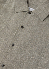 An iconic Loro Piana signature, the Andre shirt captures the ease and effortless sophistication of the warmer months. In breathable Summer Linen Crepe with a herringbone weave, it makes for a lightweight and refreshing summer garment. Inspired by tailored styles from the 1950s, its defining collar is designed with wide, folded facings, forgoing the need for a stiff band without losing its polished aesthetic. Product details Spread collar Chest pocket Front fastening with mother-of-pearl buttons Logo-detailed mouche Pleats at the back Composition: 100% Linen Product code: FAP4340