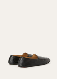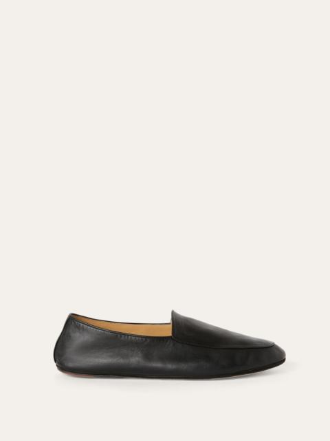 Our slipper-style moccasin is lovingly crafted from the sumptuously soft nappa leather of lambskin. As you slip your feet into these exquisite shoes, you'll revel in the buttery texture and supple flexibility. A simple fold at the back makes the transition from day to night effortless, transforming them into stylish slippers for cozy evenings at home. Product details Heel tab to help slip the shoe on Split leather sole — perfect either inside or outdoors Composition: Upper: 100% Lambskin Sole: 100% Rubber Specific Features: 100% Calfskin Made in Italy Product Code: FAO7135