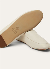 Our slipper-style loafer is lovingly crafted from the sumptuously soft nappa leather of lambskin. As you slip your feet into these exquisite shoes, you'll revel in the buttery texture and supple flexibility. A simple fold at the back makes the transition from day to night effortless, transforming them into stylish slippers for cozy evenings at home. Product details Heel tab to help slip the shoe on. Split leather sole — perfect either inside or outdoors. Composition: Upper: 100% Lambskin Sole: 100% Rubber Specific Features: 100% Calfskin Made in Italy Product code: FAO7135