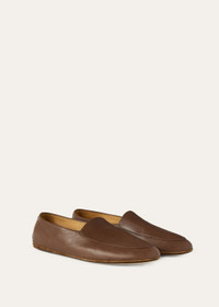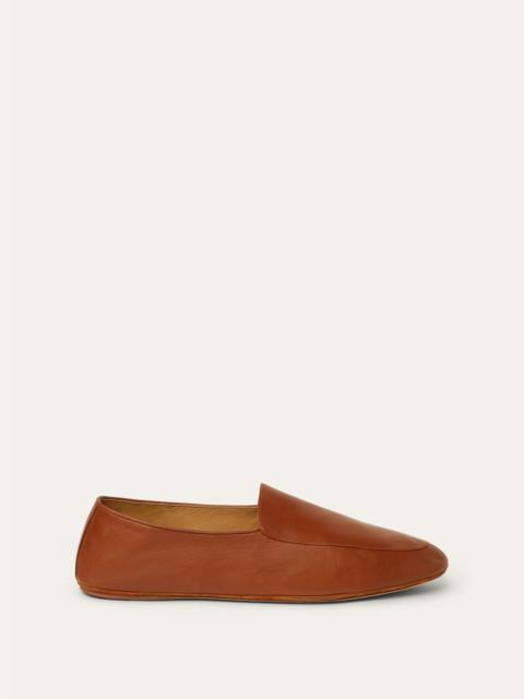 Our slipper-style moccasin is lovingly crafted from the sumptuously soft nappa leather of lambskin. As you slip your feet into these exquisite shoes, you'll revel in the buttery texture and supple flexibility. A simple fold at the back makes the transition from day to night effortless, transforming them into stylish slippers for cozy evenings at home. Product details Heel tab to help slip the shoe on Split leather sole — perfect either inside or outdoors Composition: Upper: 100% Lambskin Sole: 100% Rubber Specific Features: 100% Calfskin Made in Italy Product code: FAO7135