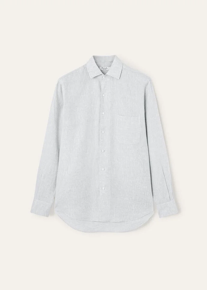 Classic Loro Piana shirt in cool, fresh linen, a pleasure to wear. The collar with facings ensures a crisp, impeccable finished look, also when worn open without a tie. Casual but extremely refined, the definitive Loro Piana shirt for leisure time dressing. Perfect worn alone or under a jacket. Product details Four-hole buttons in mother-of-pearl Mouche with Loro Piana logo, and cuffs with rounded corners and two buttons Pleats on back Composition: 100% linen Made in Italy Product code: FAF2545