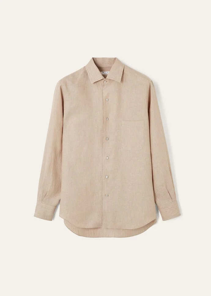 Classic Loro Piana shirt in cool, fresh linen, a pleasure to wear. The collar with facings ensures a crisp, impeccable finished look, also when worn open without a tie. Casual but extremely refined, the definitive Loro Piana shirt for leisure time dressing. Perfect worn alone or under a jacket. Product details Four-hole buttons in mother-of-pearl Mouche with Loro Piana logo, and cuffs with rounded corners and two buttons Pleats on back Composition: 100% linen Model wears an IT M Model measures: height 6' 1.6"/ 187cm, bust 38.6"/ 98cm, waist 27.6"/ 70cm, hips 35.0"/ 89cm. Made in Italy Product Code: FAF2545