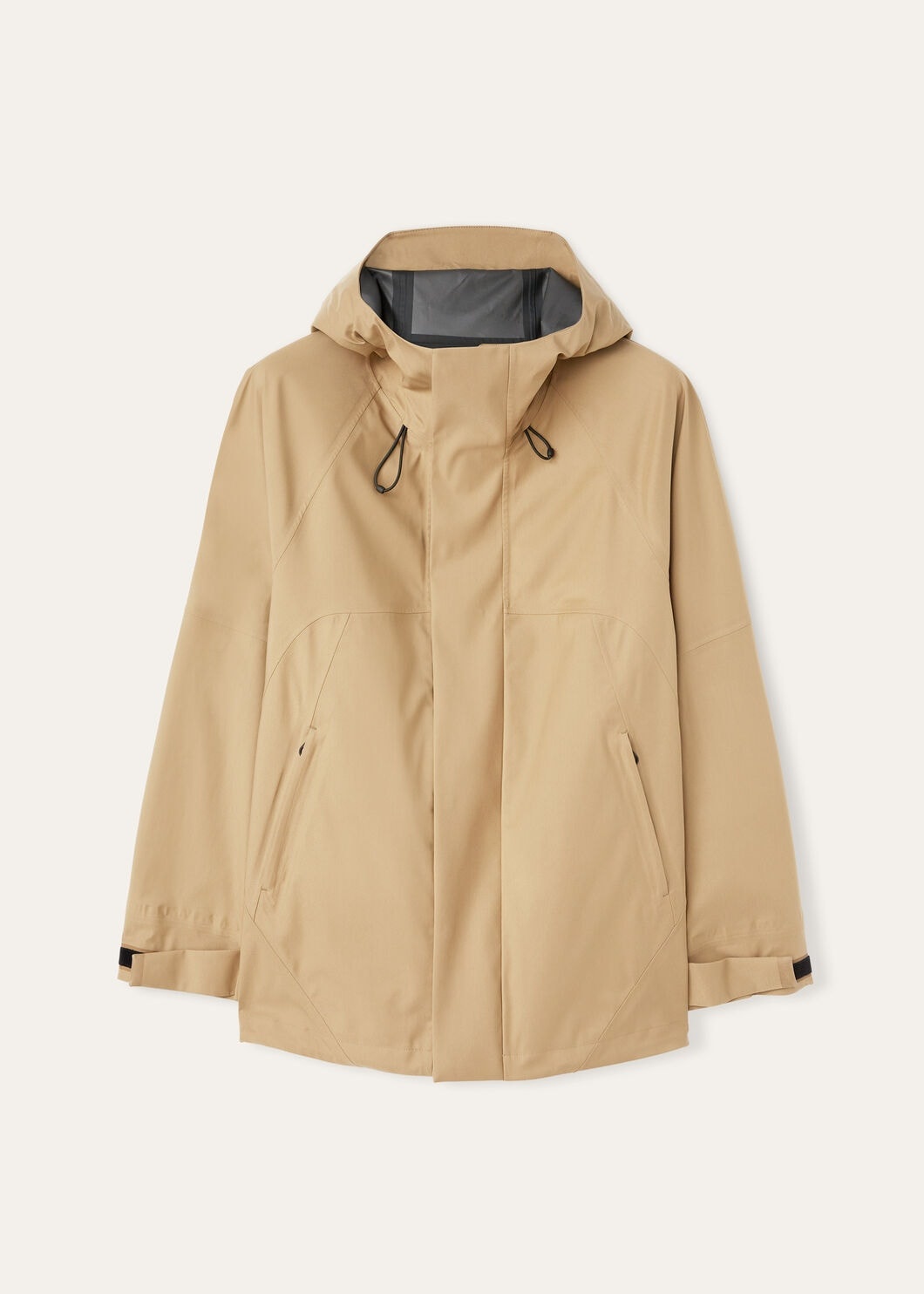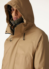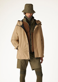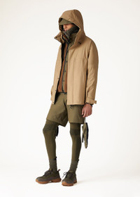 The Axten Jacket – an exceptional technical stretch blend of wool, nylon and silk, designed as a windbreaker with an adjustable hood. Featuring a small cape at the back with laser-cut ventilation holes at the bottom, this jacket not only has excellent thermoregulation properties, but also boasts an exquisitely soft and flexible fabric that offers the modern wearer impeccable elegance and comfort. Enhance your outerwear collection with this fusion of technical prowess and sophisticated design. Product details Non-detachable hood Zip and press-stud fastening with flap Slanting zip-fastened pockets Sleeves with cuffs that can be adjusted by means of tabs with Velcro and concealed press studs Bottom drawstring Inside unlined and thermotaped, with zip-fastened patch pockets Composition: Shell: 57% Virgin Wool, 35% Technical Fabric, 6% Silk, 2% Elastane Reverse Side: 100% Technical Fabric Model wears an IT XS Model measures: height 6′ 3″/ 191cm, bust 35.0″/ 89cm, waist 31.5″/ 80cm, hips 35.0″/ 89cm. Product code: FAN8146