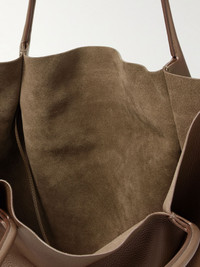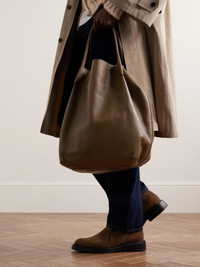 Loro Piana's 'Bale' tote bag is ideal for every day, thanks to its simple design and spacious interior. Made in Italy from full-grain leather, it has a detachable pouch to secure small essentials and plenty of room inside for a laptop, full-sized wallet and over-the-ear headphones. Details & Care - Army-green full-grain leather (Calf) - Top handles - Detachable zipped pouch - Suede lining - Open top - Designer colour: Salty Cappers - Comes with dust bag