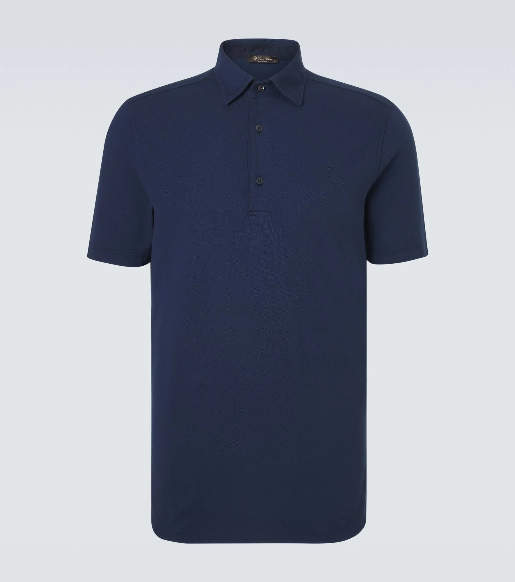 Every Loro Piana design combines the best of Italian craftsmanship with the finest raw materials. A staple to wear for seasons to come, the Brenna polo shirt is made from soft, lightweight cotton pique and is garment-dyed. Product Details - Material: 100% cotton - Care instructions: hand wash - Made in Italy - Color: blue - Designer color name: Eclipse Dyed - Collar: polo collar - Closure: buttoned placket - Item number: P01138768 Size & Fit - True to size - Straight fit - Slightly stretchy fabric - Falls below the hip - Height of model is 192cm-75.5" and wears a size L