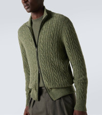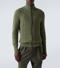 Cable-knit cashmere zip-up sweater