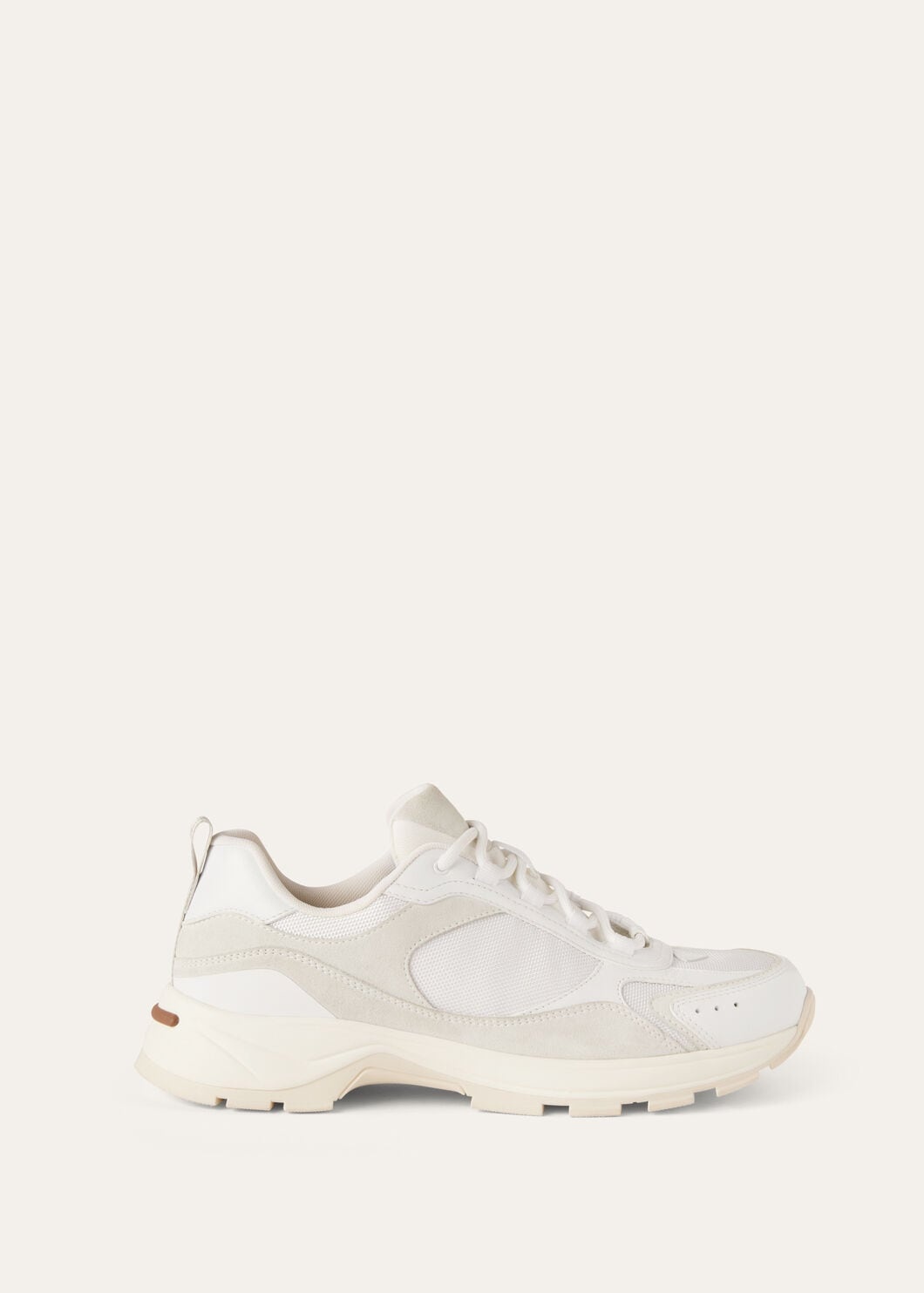 These urban-inspired sneakers wrap feet in a cocoon of high-performance comfort. Suede panels add a touch of refined texture to the sleek silhouette, while soft padding conforms to every contour, making these shoes the perfect companion for long days of urban adventure or casual weekend getaways. The lightweight, soft sole with an intricately carved tread design promises optimal performance. Product details Bagged construction Enveloping lace fastening Composition: Exterior 1: 100% Technical Fabric Exterior 2: 100% Split calfskin Lining: 72% Technical Fabric, 28% Elastane Specific Features: 100% Cow Leather Sole: 100% Rubber Made in Italy Product code: FAO3795