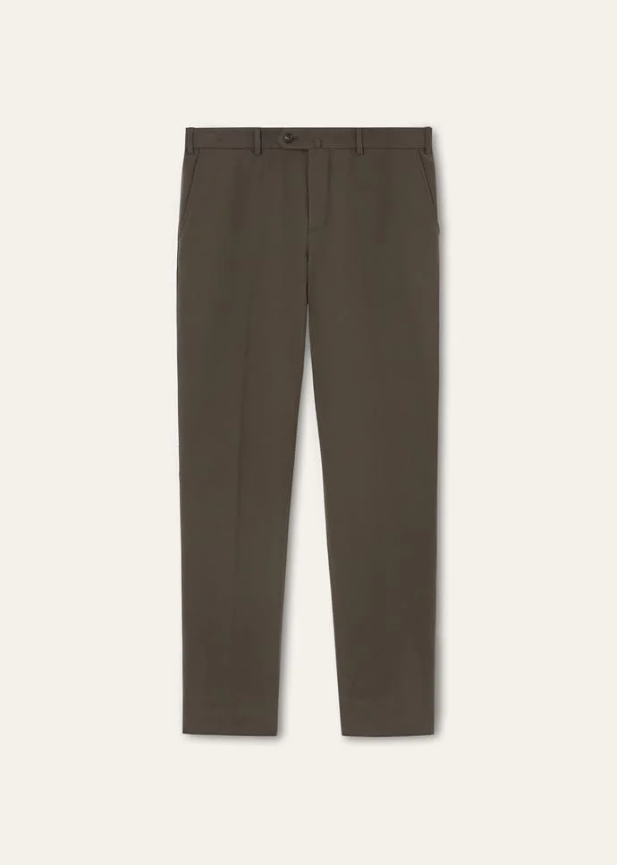 Ultra-soft cotton pants with a touch of stretch. Flat fronted and garment dyed, for an impeccable finished look. Team this versatile casual staple with a jacket or outerwear for contemporary outfits with effortless polish. Product details Length: 118.5 cm Bottom leg: 19 cm Rise: 22 cm Welt pockets on rear with button fastening Spare buttons supplied Name label inside Composition: 96% cotton 4% elastane Model wears an IT 48 Model measures: height 6′ 2″/ 188cm, bust 35.8″/ 91cm, waist 28.0″/ 71cm, hips 35.8″/ 91cm, shoes 16.9″/ 43cm. Made in Italy Product code: FAO8422