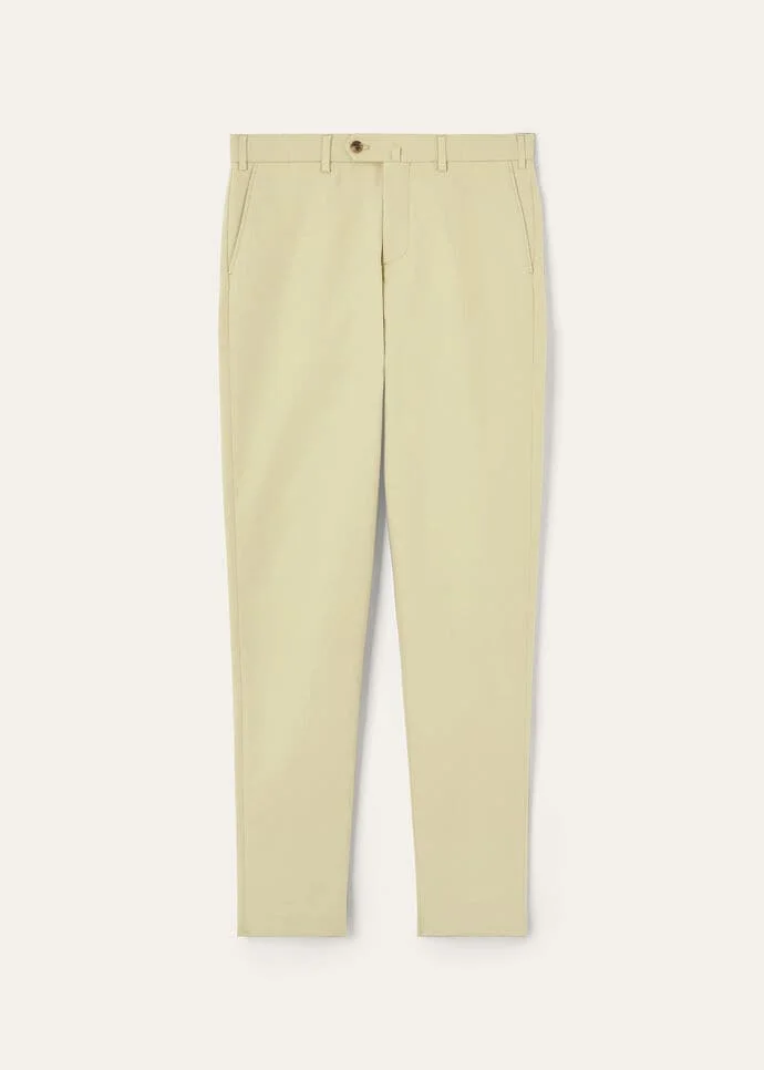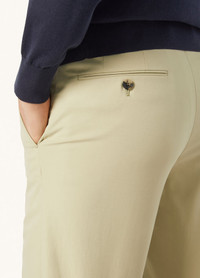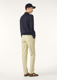 Ultra-soft cotton trouser with a touch of stretch. Flat fronted and garment dyed, for an impeccable finished look. Team this versatile casual staple with a jacket or outerwear for contemporary outfits with effortless polish. Product details Length: 118.5 cm Bottom leg: 19 cm Rise: 22 cm Welt pockets on rear with button fastening Spare buttons supplied Name label inside Composition: 96% cotton 4% elastane Made in Italy Product code: FAO8422