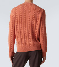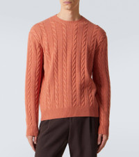 This Cedar sweater from Loro Piana is made from cashmere in a cable-knit pattern. The design is finished with ribbed detailing at the crewneck, hem, and cuffs. Product Details - Material: 100% cashmere - Care instructions: hand wash - Made in Italy - Color: orange - Designer color name: Autumn Sunset Mel - Item color: orange - Collar: crewneck - Cuff: ribbed - Hem: ribbed - Item number: P01138709 Size & Fit - True to size - Straight fit - Slightly stretchy fabric - Falls to the hip - Height of model is 189cm-74.5" and wears a size IT 50