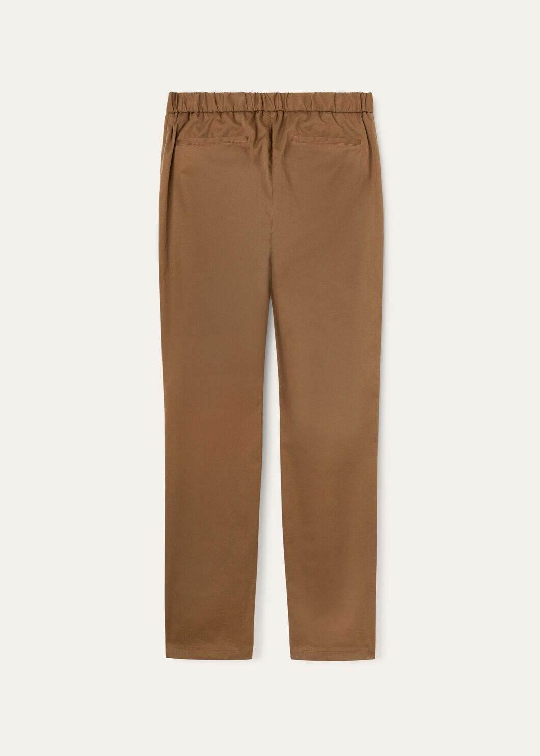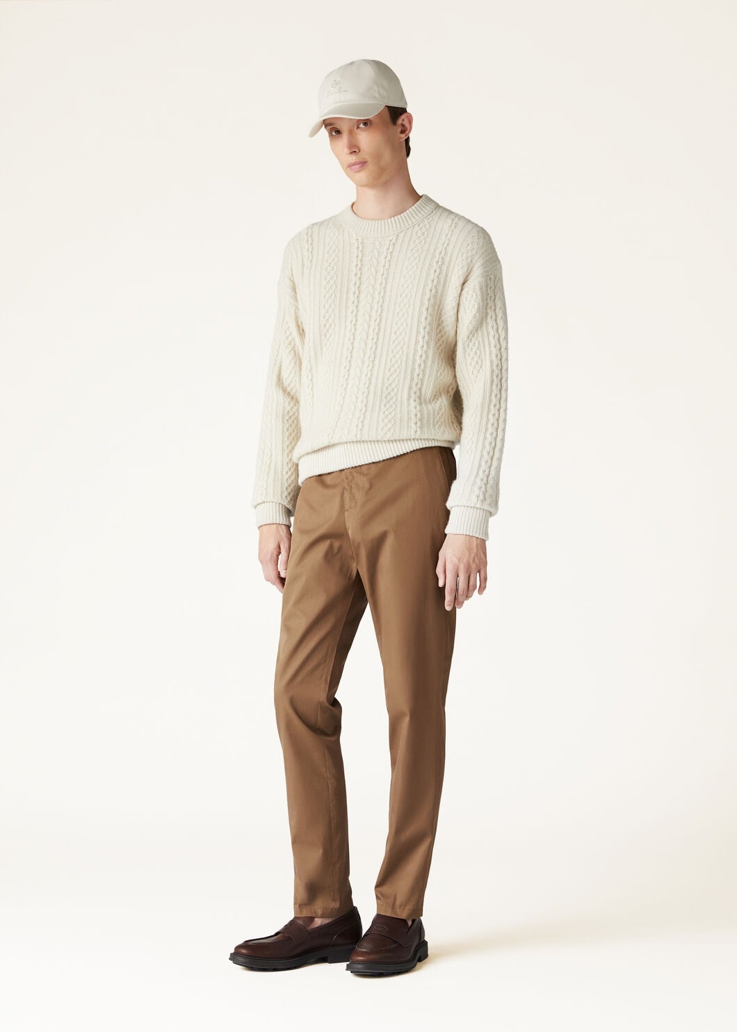 Feel the originality of our sartorially cut cotton twill pants, meticulously crafted from a compact and textured twill fabric. Using the highest quality cotton yarn, these pants guarantee exceptional comfort with every wear. The addition of an elasticated waistband with an adjustable drawstring adds a casual touch, ensuring both style and ease for any occasion. Product details Elasticated waistband with adjustable drawstring Slit pockets at the back Composition: 100% Cotton Model wears an IT 44 Model measures: height 6' 0.8"/ 185cm, bust 37.0"/ 94cm, waist 27.2"/ 69cm, hips 35.8"/ 91cm. Made in Italy Product Code: FAO0440