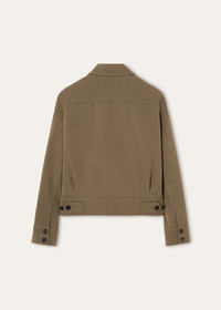 The Colin blouson is a vintage-style bomber in a clean profile, designed for refined protection. Rendered in Jaspe Cavalry Rain fabric in worsted-spun wool, it is twill-woven from wool for a near-velvety touch and finished with a layer of Storm System® to gently fend off the elements. Side tabs and horn buttons add a touch of polish. Product details Shirt collar Side pockets; two inner pockets with horn button Shirt cuffs with double horn button Horn button front fastening Adjustable straps with buttons at the back Lined Regular fit Water-repellent and wind-resistant finish Jaspe fabric Composition: 100% Virgin Wool Model wears an IT 48 Model measures: height 6′ 2″/ 188cm, bust 35.8″/ 91cm, waist 28.0″/ 71cm, hips 35.8″/ 91cm, shoes 16.9″/ 43cm. Made in Italy Product code: FAP7752