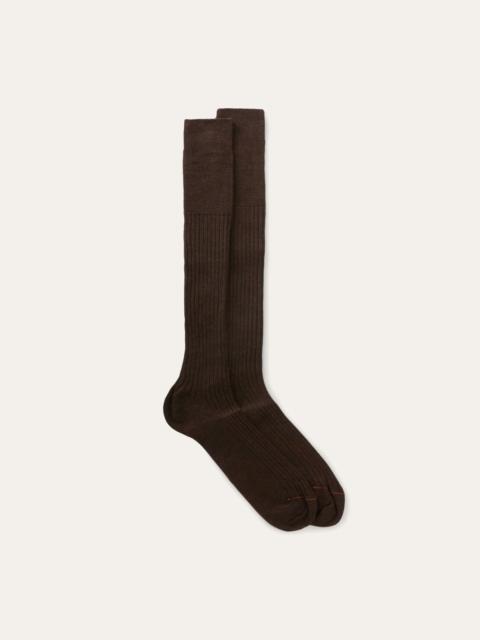 Men's socks in micro rib-knit stretch cashmere and silk. Light-weight and supremely comfortable, with the exclusive touch of silk. Product details Available in neutral colours to complement formal wear Ideal as a gift, whether a single pair or an assortment of different colours Composition: 70% cashmere 30% silk Product code: FAE6207