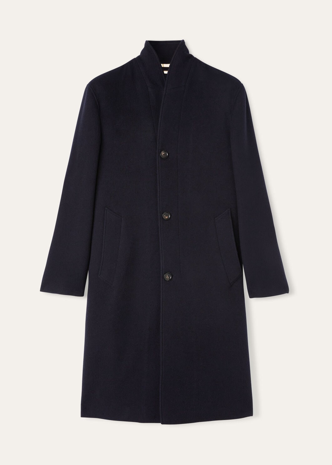 Delight in the enchanting spirit of Japanese esthetics with the Daito coat, carefully crafted from double-lined cashmere for a surprising softness that caresses the senses. Water-repellent, this exceptional piece features a striking upright shawl collar, reminiscent of the traditional Japanese kimono, which inspired the geometric cut of the neckline. With fitted sleeves and exceptionally clean lines, the Daito coat effortlessly combines style and comfort, allowing you to embrace elegance with ease. Product details Single-breasted fastening with visible buttons Classic edged outer pockets Inside pockets: a zipped single-welted pocket on the right, and a buttoned double-welted pocket on the left Central seam at the back with a slit at the bottom Composition: 100% Cashmere Model wears an IT XS Model measures: height 6' 2.8"/ 190cm, bust 34.6"/ 88cm, waist 28.0"/ 71cm, hips 37.4"/ 95cm. Made in Italy Product Code: FAO0747