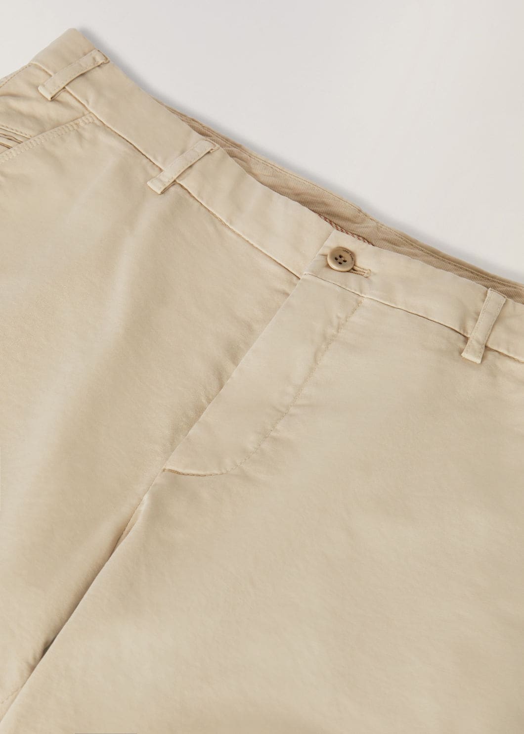 Casual, relaxed cut deck shorts in a superior quality compact cotton fabric with a touch of stretch for a sleek finish. Laid-back and easy, the ideal option for leisure and summer days by the sea. Product details Zip and button fastening Diagonal pockets with double stitching Double welt coin pocket Double welt pockets with button and button hole on rear, accentuated by top stitching and bar detail Composition: 96% cotton 4% elastane Model wears an IT 50 Model measures: height 6′ 3″/ 190cm, waist 31.5″/ 80cm, hips 35.0″/ 89cm. Made in Italy Product code: FAE8348
