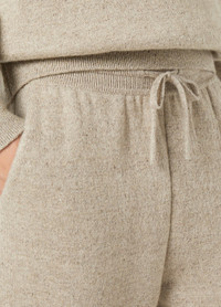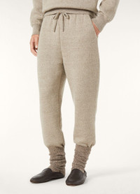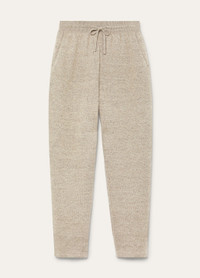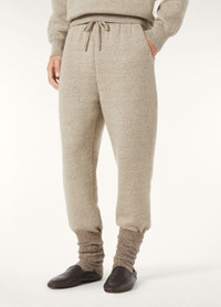 The Feriolo pants artfully guide you through the season's transition, draping you in refined luxury as the world emerges from its wintry slumber. This jogging-style pair wraps the legs in a luxurious blend of cashmere and linen for unparalleled comfort without sacrificing style. The waistband and side pockets bring functional elegance to this relaxed piece. Product details High-rise waist Straight cut American pockets on the front Drawstring at the waist Elasticated, ribbed belt Regular fit Unlined Plain stitch Composition: 48% Linen, 45% Cashmere, 7% Silk Made in Italy Product code: FAO9781