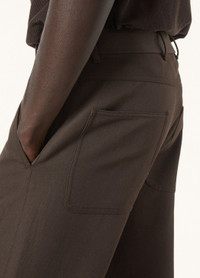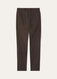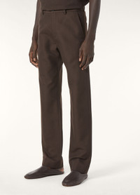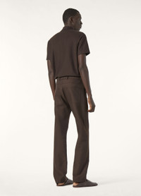 The Harper pants capture the quiet rhythm of spring mornings, where measured silhouettes carry the refined promise of lengthening days. They reinterpret the casual spirit of denim in refined wool and cotton. Traditional elements such as patch pockets and back yokes add character to this upscale casual piece. Product details High-rise waist Straight cut Side straight pockets on the front; welt pockets on the back Zip closure with metal hook and button Horn button Inner Loro Piana logo tag to write your name Belt loops Regular fit Unlined Double pince; sharkskin fabric Composition: 51% Wool, 49% Cotton Product code: FAP3281