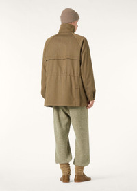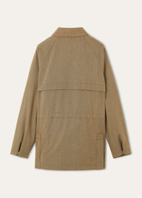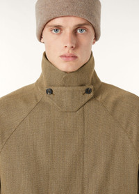 A contemporary twist on the iconic Horsey® jacket, this version features a characteristic Cashmere Storm System® collar. Its shape is generously cut, ideal for layering and framed with clean lines, and hosts a signature Icons label on the inside. Made using broken Jaspe fabric woven by Loro Piana’s in-house artisans, it is crafted from pure wool that has been worsted-spun and shaved for a deeper color and a clean, smooth finish. A layer of Rain System® provides protection against the elements. Product details Shirt collar with removable chin strap Oversized patch pockets with flap and snap button and side entry; two welt pockets on the inside with zip fastening and one patch pocket with flap and horn button Adjustable cuffs with snap button and inner ribbed cuff Hidden double fastening with two-way zip and horn buttons Inner logo tag to write your name Felted insert at the collar Water-repellent finish Lined with checkered fabric Regular fit Double vents with snap buttons Jaspe fabric Adjustable inner drawstring at the waist Composition: 100% Virgin Wool Model wears an IT 48 Model measures: height 6′ 2″/ 188cm, bust 32.7″/ 83cm, waist 27.6″/ 70cm, hips 34.6″/ 88cm, shoes 16.9″/ 43cm. Product code: FAP4223