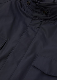The Traveler field jacket captures the gentle retreat of winter, providing warmth and style as the days grow lighter and the chill begins to soften. It combines technical innovation with luxurious comfort, alongside thoughtful details such as a drawstring waist and versatile pockets. The removable padding, lined with silk on one side and cashmere jersey on the other, makes it a year-round companion for the discerning traveler. Product details Hood hidden in collar Stand-up collar with tab closure Pleats behind sleeves for ease of movement Removable lining padded with wadding Composition: 100% Microfiber Made in Italy Product code: FAP2835