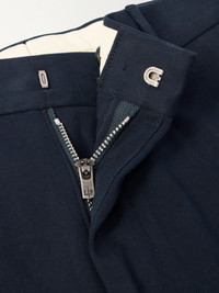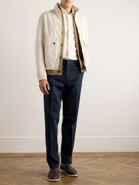 The classic straight cut of Loro Piana's 'Jarno Austin' trousers will always look sharp and refined. They're made in Italy from cotton-twill that's blended with a little stretch for comfort and easy movement. Size & Fit - Fits true to size. Take your normal size - Regular-straight leg, mid-rise style - Unfinished hems; alter to fit - Mid-weight, slightly stretchy fabric - Italian sizing Details & Care - Blue stretch-cotton twill - Button, hook and zip fastening - 98% cotton, 2% elastane; buttons: 100% horn (Buffalo) - Dry clean