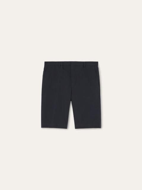 Ideally suited for moments spent in leisure, the Jarno Bermuda shorts are worked from Hyannis Cotton – a satin weave with a touch of stretch promising daylong comfort. The pair is designed with a straight leg that tapers gently at the knee, offering a clean, polished line. Product details Mid-rise waist Straight cut American pockets with small pocket at the front; buttoned welt pockets at the back Fly with logo-detailed metal and horn buttons and zip fastening Inner Loro Piana logo tag to write your name on Belt loops Unlined Regular fit Satin weave Composition: 96% Cotton, 4% Elastane Made in Italy Product code: FAP3256