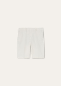 Ideally suited for moments spent in leisure, the Jarno Bermuda shorts are worked from Hyannis Cotton – a satin weave with a touch of stretch promising daylong comfort. The pair is designed with a straight leg that tapers gently at the knee, offering a clean, polished line. Product details Mid-rise waist Straight cut American pockets with small pocket at the front; buttoned welt pockets at the back Fly with logo-detailed metal and horn buttons and zip fastening Inner Loro Piana logo tag to write your name on Belt loops Unlined Regular fit Satin weave Composition: 96% Cotton, 4% Elastane Made in Italy Product code: FAP3256