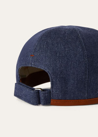 In the rhythmic grace of daily rituals, our Japanese-inspired collection embodies the poetry of perfected routines, weaving harmony and intention into the very fabric of everyday elegance. Our iconic Loro Piana six-segment baseball cap has been meticulously crafted in exclusive denim and accented with silky leather trims. This sophisticated accessory seamlessly blends comfort and refinement for impeccable casual style. Product details Embroidered logo at the front Checked belt lining Kummel-colored bar tack Adjustable Velcro tab Composition: 100% Cotton Lining: 64% Cotton, 36% Technical Fabric Specific Features: 100% Calfskin Product code: FAN9927
