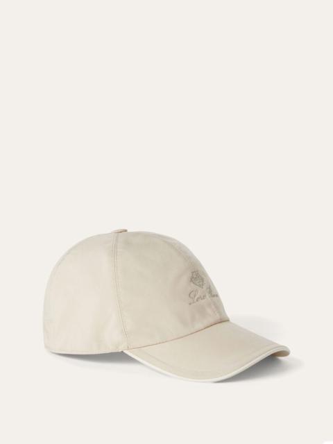 Equal parts relaxed, refined, and sporty, the Loro Piana Baseball cap is a signature Loro Piana accessory. It has a six-segment top featuring a tonal logo at the front and adjusts to fit at the back. The Wind Storm System® is a compact yet ultra-light microfiber finished with a water- and wind-resistant membrane for utmost functionality. Product details Lined in Cotton Belt Tonal embroidered logo at the front Elasticated back Inner band in Kummel-colored grosgrain Composition: 100% Microfiber Made in Italy Product code: FAP9958