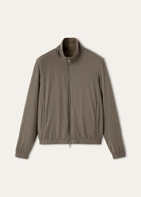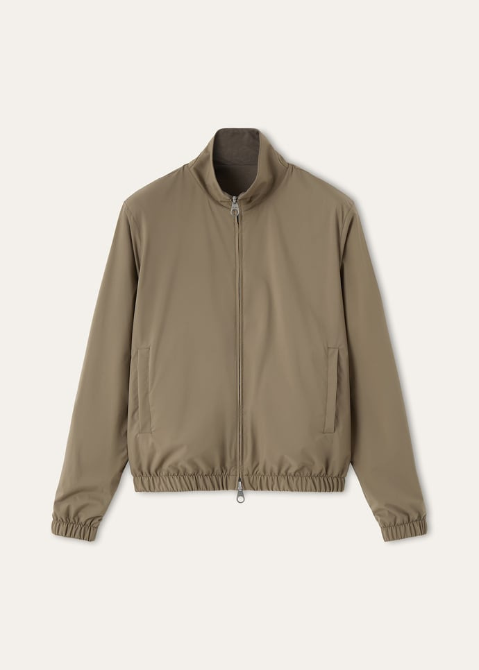 Defined by its elastic cuff and two-way zip closure, the Loro Piana Bomber jacket is an iconic garment that blends versatility with a refined athletic silhouette. Ideal for leisure, travel, sports, and beyond, it reverses from Cashmere Light to Windmate Stretch Storm System® – the Maison’s signature microfiber fabric, enhanced with a touch of stretch. Suede details along the lunette and pockets add a refined finish. Product details Standing collar Front welt pockets Elasticated hem and sleeves Two-way zip closure Comes with Microfiber bag Composition: 100% Cashmere (side 1), 100% Microfiber (side 2) Made in Italy Product code: FAP9753