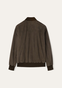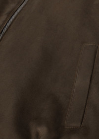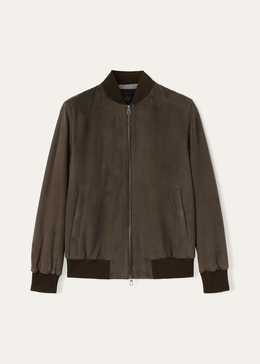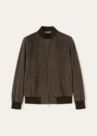 Iconic Loro Piana bomber jacket made from fine, lightweight suede. This soft, comfortable style is enhanced by light padding and a sporty, preppy collar. Product details Knit Wish® wool collar, cuffs and hem Welt pockets Composition: 100% Kidskin Lining: 64% Cotton, 36% Technical Fabric Made in Italy Product code: FAM4591