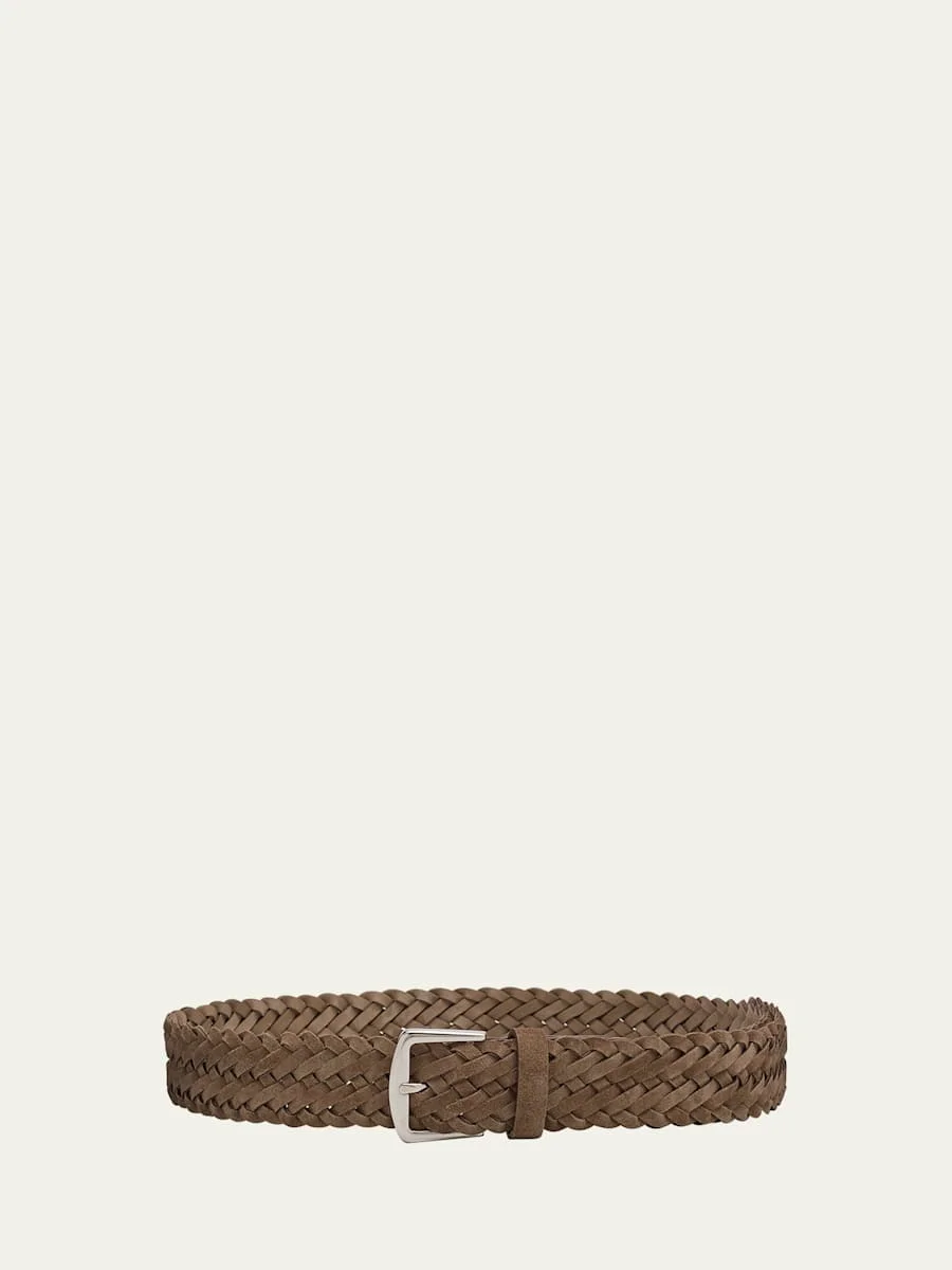 Loro Piana "Alsavel" belt in braided suede Silvertone single-prong buckle Leather loop Adjustable fit Leather Made in Italy Online Inquiries: BGS21_NCVA9| Store Inquiries: #4043854