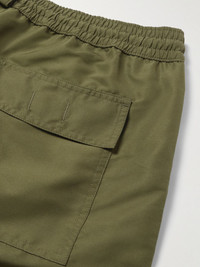 Loro Piana's swimwear is designed with comfort in mind. These 'Bay' swim shorts are made from technical shell, which dries off quickly after a dip. The back VELCRO®-fastening pocket is ideal for storing a key or card. Size & Fit - Fits true to size. Take your normal size - Regular-straight leg, low-crotch style - Mid-length - Built-in mesh briefs - Drawstring waist - Model is shown wearing a M - Model measures: waist size 32, height 6'2"/ 188cm Details & Care - Army-green shell - 100% polyester - Machine wash - Designer colour: Fern Meadow