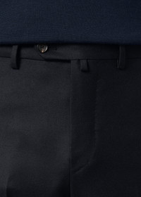 Loro Piana pants are the essence of sartorial sophistication, narrating a rich legacy of heritage and innovation. An interpretation of the quintessential Loro Piana flat-front pant, this slim-fit style epitomizes refined tailoring in luxurious wool-cashmere flannel. Wear them with structured blazers for an impeccable, contemporary aesthetic. Product details Pre-formed inner waistband, a sartorial detail that ensures an impeccable appearance Six-loop waistband fastened with anchor clasp with 4-hole buttons Zipped flap Slanted front pockets with bar tacks on the sides Double welt rear pocket with visible 4-hole buttons Composition: 95% Virgin Wool, 5% Cashmere Lining: 60% Acetate, 40% Viscose Model wears an IT 44 Model measures: height 6′ 2″/ 189cm, bust 37.4″/ 95cm, waist 30.3″/ 77cm, hips 37.4″/ 95cm, shoes 18.1″/ 46cm. Made in Italy Product code: FAO8420