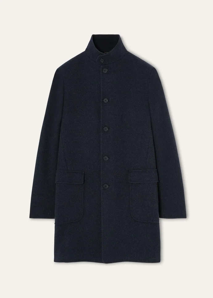 Casual coat crafted from our iconic double cashmere Jersey Novalis. Light yet warm, with a natural stretchiness, this delightfully soft fabric and stylish straight cut are designed to gently envelop the wearer. Ideal for leisure time in the city. Product details Suede trim Upright collar with button Composition: 96% cashmere 4% polyamide Trim: 100% suede goatskin Model wears an IT M Model measures: height 6′ 1″/ 186cm, bust 35.0″/ 89cm, waist 28.3″/ 72cm, hips 35.8″/ 91cm, shoes 43.5. Made in Italy Product code: FAF4702