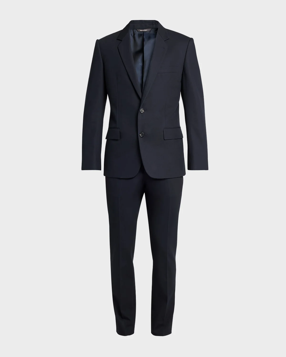 - Loro Piana solid two-piece suit in a twisted cotton blend - Modern fit - Cotton/virgin wool - Lining: Cupro - Dry clean - Made in Italy - Sport coat: - Notched lapels - Left lapel buttonhole - Two-button front - Chest welt pocket - Internal breast pocket - Hip flap pockets - Four-button cuffs - Single-vented back - Trousers: - Extended button-zip front - Belt loops - Regular rise - Side slip pockets - Back besom-button pockets - Tapered legs - Full length - Model is 6'1"/185cm.
