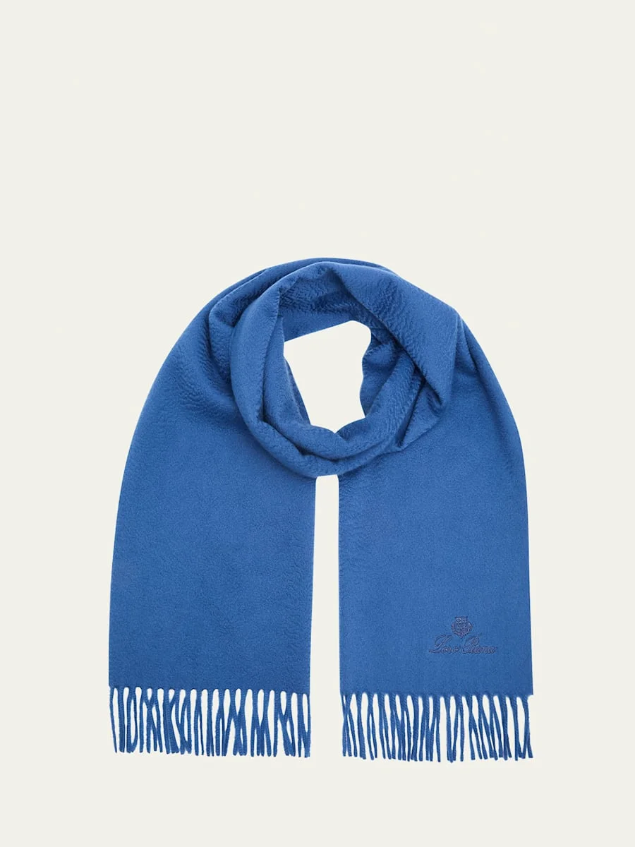 Loro Piana "Grande Unita" scarf crafted from extrafine cashmere Approx. 69"L x 17"W Features an exclusive Frisson finish to give the fabric an added sheen with a luminous color quality Fringe ends May be styled multiple ways Cashmere Hand wash or dry clean Made in Italy