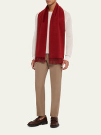 Loro Piana "Grande Unita" scarf crafted from extrafine cashmere Approx. 69"L x 17"W Features an exclusive Frisson finish to give the fabric an added sheen with a luminous color quality Fringe ends May be styled multiple ways Cashmere Hand wash or dry clean Made in Italy